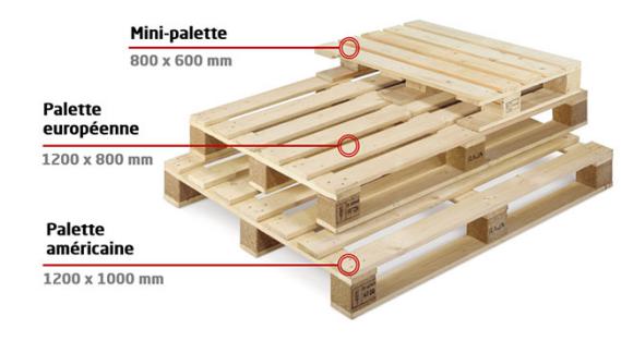 Dans le monde des palettes, on distingue traditionnellement deux tailles : la taille américaine et la taille européenne. Le format américain est de 1200 x 1000 mm et est principalement utilisé aux États-Unis, au Canada et au Japon. Le format européen est de 1200 x 800 mm. Cette taille est parfaitement compatible avec la plupart des camions européens. Enfin, il y a aussi la « mini-palette ». C’est le petit frère de la palette européenne et on ne la trouve généralement qu’en Europe. Bon à savoir : la palette européenne et la mini-palette arborent souvent le logo EUR ou EPAL.