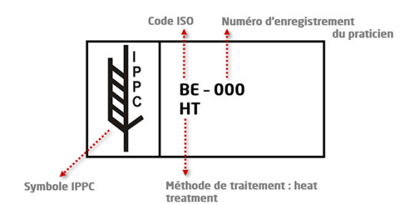 HT / DH / MB : il s’agit ici de la méthode de traitement du bois. Quelques exemples sont Heat Treatment (HT), Dielectric Heating (DH) et Methyl Bromide (MB).