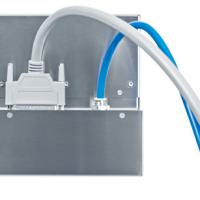 Après avoir effectué tous les raccords nécessaires au niveau du système de commande électronique et la couverture de tous les raccords de branchement inutilisés avec les accessoires correspondants, la commande est à tout moment protégée contre l'eau et la poussière selon le degré de protection IP65. En raison des conditions pendant l'exploitation d'ateliers d'impression directe de ce type de construction, la mécanique d'impression ne peut pas être complètement protégée contre la pénétration d'eau au moment de l'impression. Grâce à la cassette de nettoyage spéciale, il est néanmoins possible de protéger la mécanique d'impression contre la pénétration d'eau et de poussière pendant les temps de pause de l'installation conformément au degré de protection IP65.