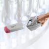 Sans aucun câble ni emplacement fixe, le jetStamp® 1025 peut être employé directement là où il est nécessaire. Une fermeture intégrée – un étanchement de la tête d'impression – garantit que l'encre ne sèche pas, même pendant les pauses prolongées.